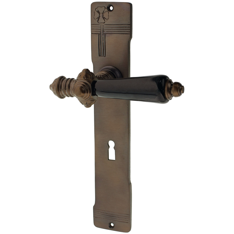 Für Zimmertüren fertigen wir die Schilde mit einem Loch für Buntbartschlüssel in 78 mm Abstand von der Türklinke. Wenn Ihr Schlüsselloch keinen 78 mm Abstand hat, können wir Ihnen gegen Aufpreis die Schilde auch mit anderen Schlüssellochabständen fertigen. In diesem Fall bitten wir um etwas Geduld bei der Lieferzeit.