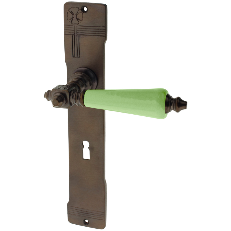 Für Zimmertüren fertigen wir die Schilde mit einem Loch für Buntbartschlüssel in 78 mm Abstand von der Türklinke. Wenn Ihr Schlüsselloch keinen 78 mm Abstand hat, können wir Ihnen gegen Aufpreis die Schilde auch mit anderen Schlüssellochabständen fertigen. In diesem Fall bitten wir um etwas Geduld bei der Lieferzeit.
