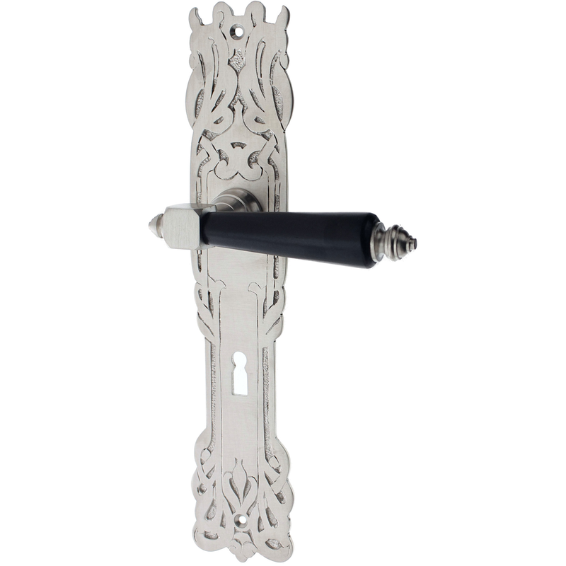 Für Zimmertüren fertigen wir die Schilde mit einem Loch für Buntbartschlüssel in 78 mm Abstand von der Türklinke. Wenn Ihr Schlüsselloch keinen 78 mm Abstand hat, können wir Ihnen gegen Aufpreis die Schilde auch mit anderen Schlüssellochabständen fertigen. In diesem Fall bitten wir um etwas Geduld bei der Lieferzeit.