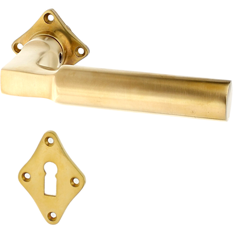 Rosettengarnitur mit Buntbart-Schlüsselloch. Egal, welchen Abstand das Schlüsselloch von der Türklinke hat, diese Garnitur passt in jedem Fall auch an Ihre historische Tür.