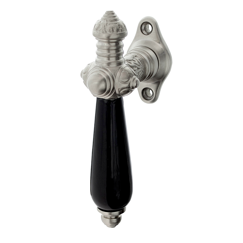 Fenstergriff Gründerzeit | Fensterolive antik | Messing, matt vernickelt | Modell