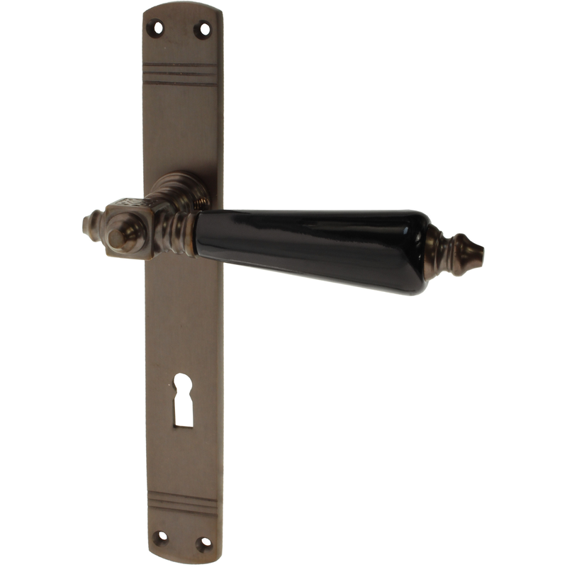 Für Zimmertüren fertigen wir die Schilde mit einem Loch für Buntbartschlüssel in 78 mm Abstand von der Türklinke. Wenn Ihr Schlüsselloch keinen 78 mm Abstand hat, können wir Ihnen gegen Aufpreis die Schilde auch mit anderen Schlüssellochabständen fertigen. In diesem Fall bitten wir um etwas Geduld bei der Lieferzeit.