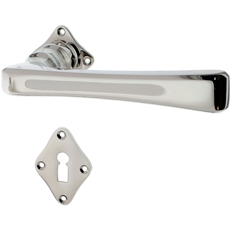 Rosettengarnitur mit Buntbart-Schlüsselloch. Egal, welchen Abstand das Schlüsselloch von der Türklinke hat, diese Garnitur passt in jedem Fall auch an Ihre historische Tür. Für WC-Verschlüsse bieten wir zusätzlich auch noch spezielle Einsteckschlösser an, falls Ihre Tür noch kein WC-Schloss hat. Schauen Sie bitte hier.