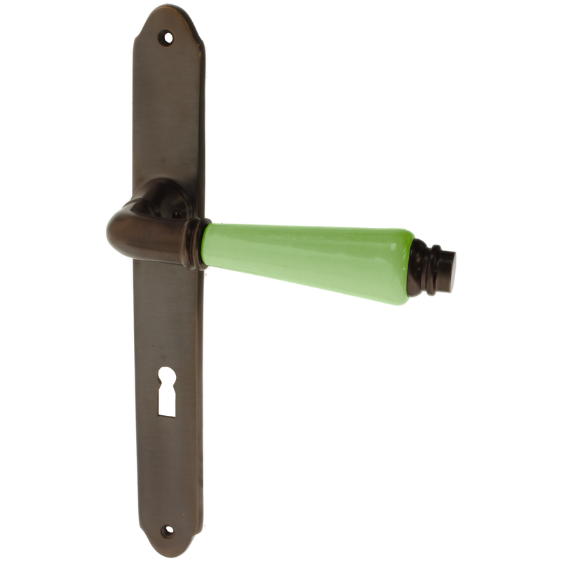 Für Zimmertüren fertigen wir die Schilde mit einem Loch für Buntbartschlüssel in 78 mm Abstand von der Türklinke. Wenn Ihr Schlüsselloch keinen 78 mm Abstand hat, können wir Ihnen gegen Aufpreis die Schilde auch mit anderen Schlüssellochabständen fertigen. In diesem Fall bitten wir um etwas Geduld bei der Lieferzeit.