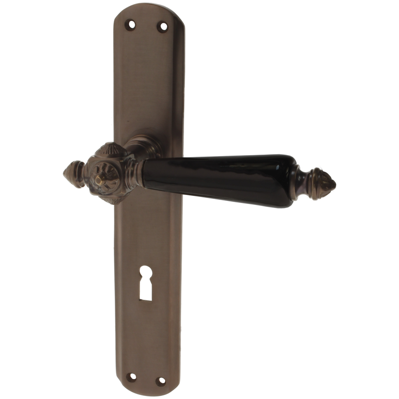 Für Zimmertüren fertigen wir die Schilde mit einem Loch für Buntbartschlüssel in 78 mm Abstand von der Türklinke. Wenn Ihr Schlüsselloch keinen 78 mm Abstand hat, können wir Ihnen gegen Aufpreis die Schilde auch mit anderen Schlüssellochabständen fertigen. In diesem Fall bitten wir um etwas Geduld bei der Lieferzeit.