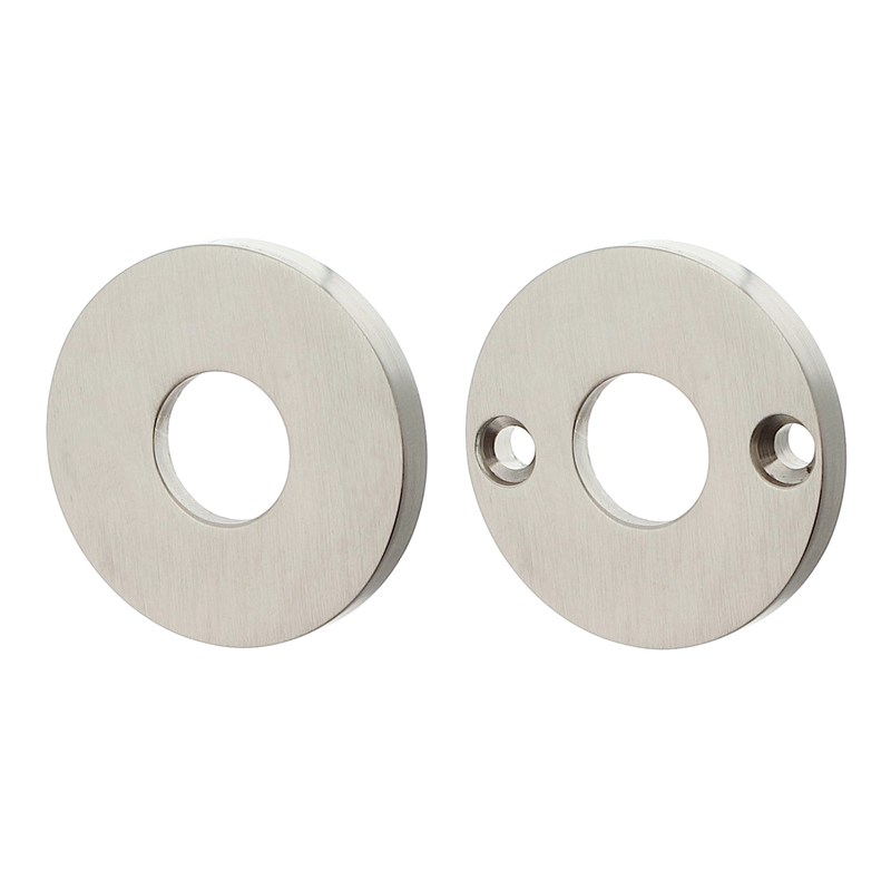 Drückerlochrosetten aus vernickeltem, matt gebürstetem Messing - Modell NM4232SET-H18 - handgearbeitet nach antikem Vorbild
