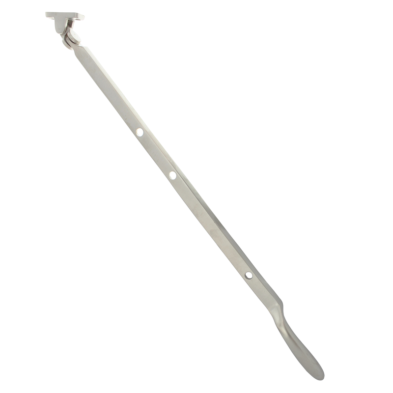 Fensterfeststeller groß für auswärts öffnende Fenster - aus Messing vernickelt und matt gebürstet