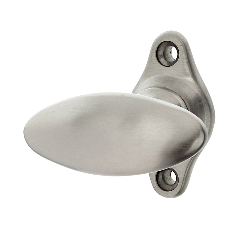 Jugendstil Fensterolive - klassische Form aus vernickeltem, matt gebürstetem Messing - Modell "Leipzig NM" - nachgefertigt nach antiker Vorlage