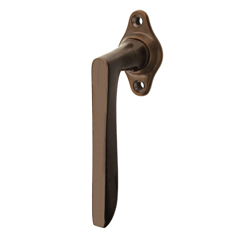 Die gerade Linienführung dieses Fenstergriffs pointiert die Form und Bestimmung dieser herkömmlichen Halbolive. Der antik patinierte Werkstoff verleiht durch seine Nuancen den Griffen individuelle Noten.