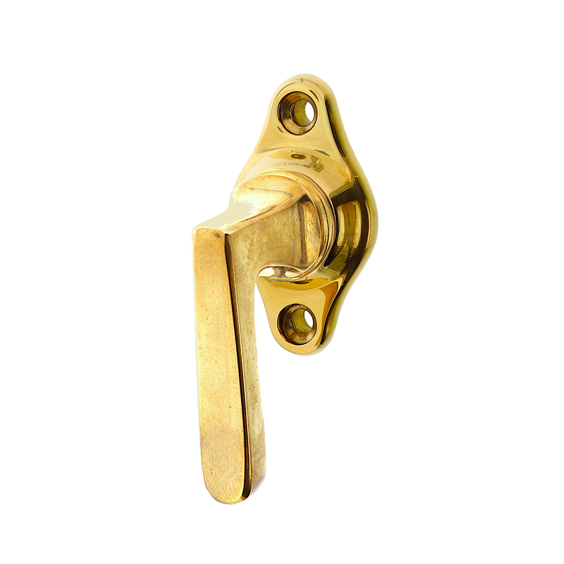 Kleiner Fenstergriff, Halbolive Messing poliert - Modell "HO Seefeld B - S" - nach historischem Vorbild