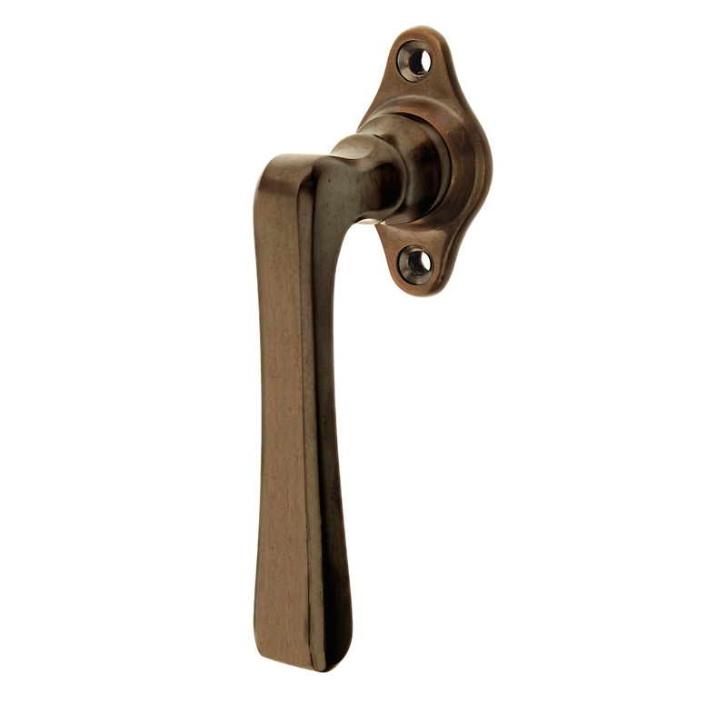 Handgegossener Fenstergriff - fließende Linien - aus dunkel patiniertem Messing - Modell "Freiberg A"