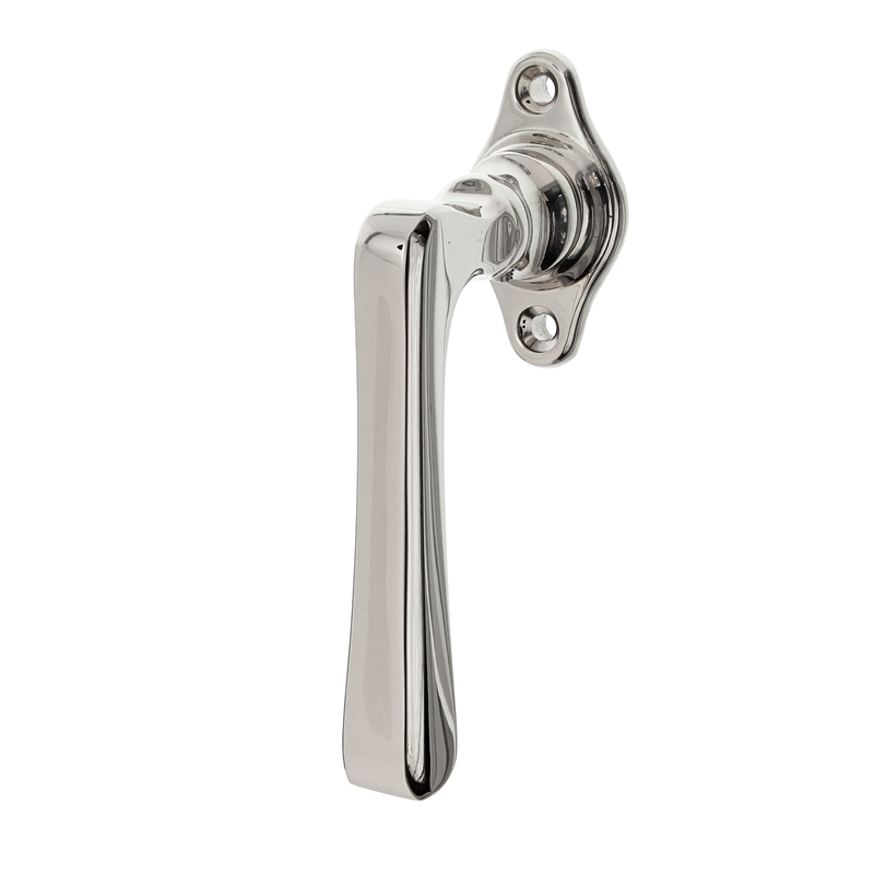 Handgefertigter Fenstergriff aus vernickeltem, hochglanz poliertem Messing - Modell "Freiberg N"