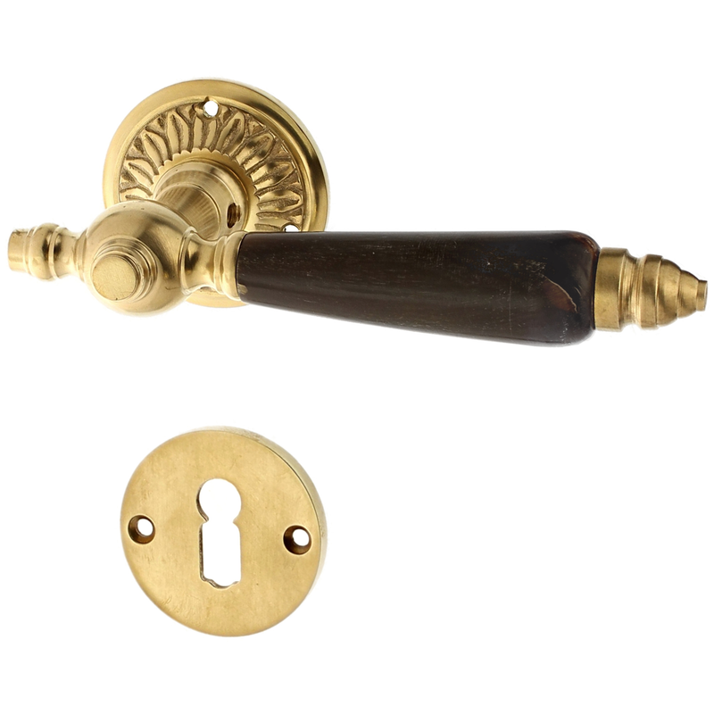 Rosettengarnitur mit Buntbart-Schlüsselloch. Egal, welchen Abstand das Schlüsselloch von der Türklinke hat, diese Garnitur passt in jedem Fall auch an Ihre historische Tür.