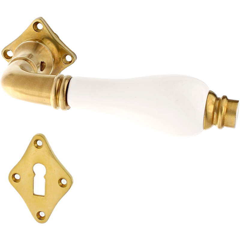 Rosettengarnitur mit Buntbart-Schlüsselloch. Egal, welchen Abstand das Schlüsselloch von der Türklinke hat, diese Garnitur passt in jedem Fall auch an Ihre historische Tür. Für WC-Verschlüsse bieten wir zusätzlich auch noch spezielle Einsteckschlösser an, falls Ihre Tür noch kein WC-Schloss hat. Schauen Sie bitte hier.