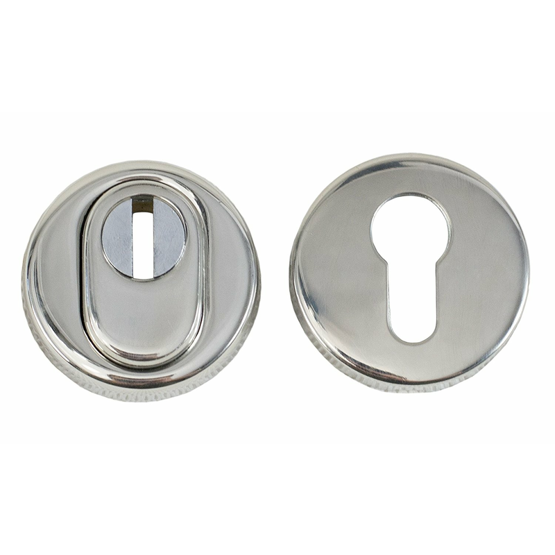 Die verchromte Oberfläche passt zu unseren handgefertigten Türgriffen und Knäufen in der Oberfläche "Hochglanz vernickelt".