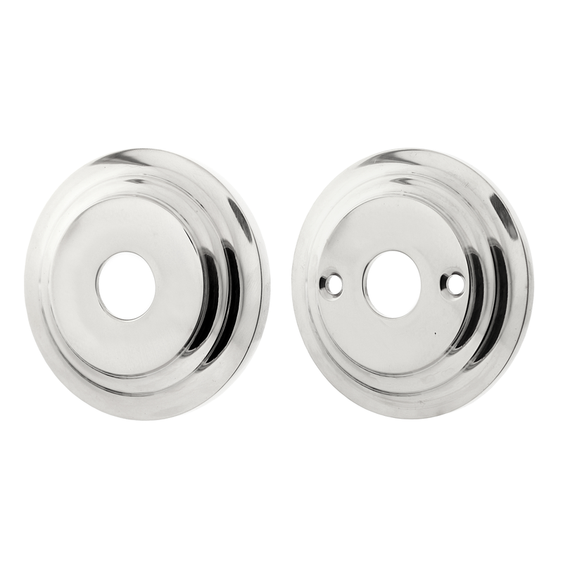 Drückerlochrosetten-Set aus vernickeltem, hochglanz poliertem Messing - Modell N4242SET-H18 - handgearbeitet nach historischem Muster