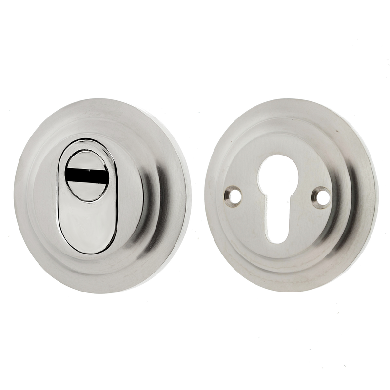 Schlüssellochrosetten-Set aus vernickeltem, matt gebürstetem Messing - Modell NM4242SET-ZA - handgearbeitet nach historischem Muster