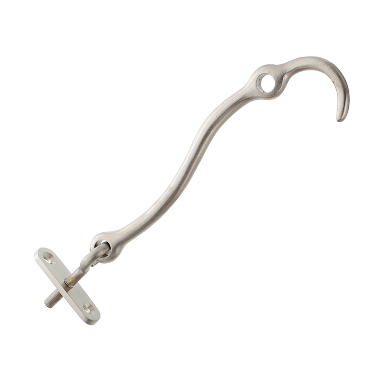 Sturmhaken mit Plattenöse NM7875, Länge 130 mm, Messing vernickelt und matt gebürstet