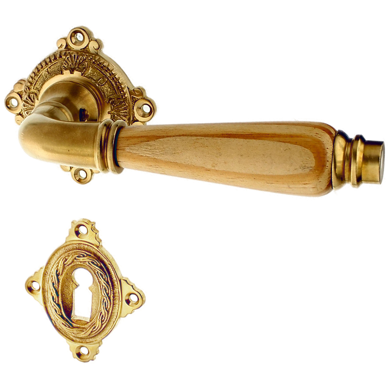 Rosettengarnitur mit Buntbart-Schlüsselloch. Egal, welchen Abstand das Schlüsselloch von der Türklinke hat, diese Garnitur passt in jedem Fall auch an Ihre historische Tür. Für WC-Verschlüsse bieten wir zusätzlich auch noch spezielle Einsteckschlösser an, falls Ihre Tür noch kein WC-Schloss hat. Schauen Sie bitte hier.