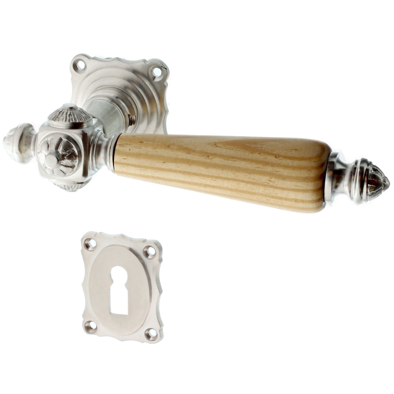 Rosettengarnitur mit Buntbart-Schlüsselloch. Egal, welchen Abstand das Schlüsselloch von der Türklinke hat, diese Garnitur passt in jedem Fall auch an Ihre historische Tür. Für WC-Verschlüsse bieten wir zusätzlich auch noch spezielle Einsteckschlösser an, falls Ihre Tür noch kein WC-Schloss hat. Schauen Sie bitte hier.