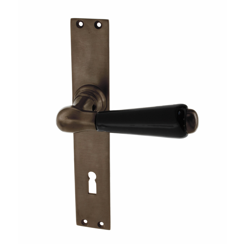 Handgearbeitete Türgarnitur - markante Form - aus dunkel patiniertem Messing - Brun-S A