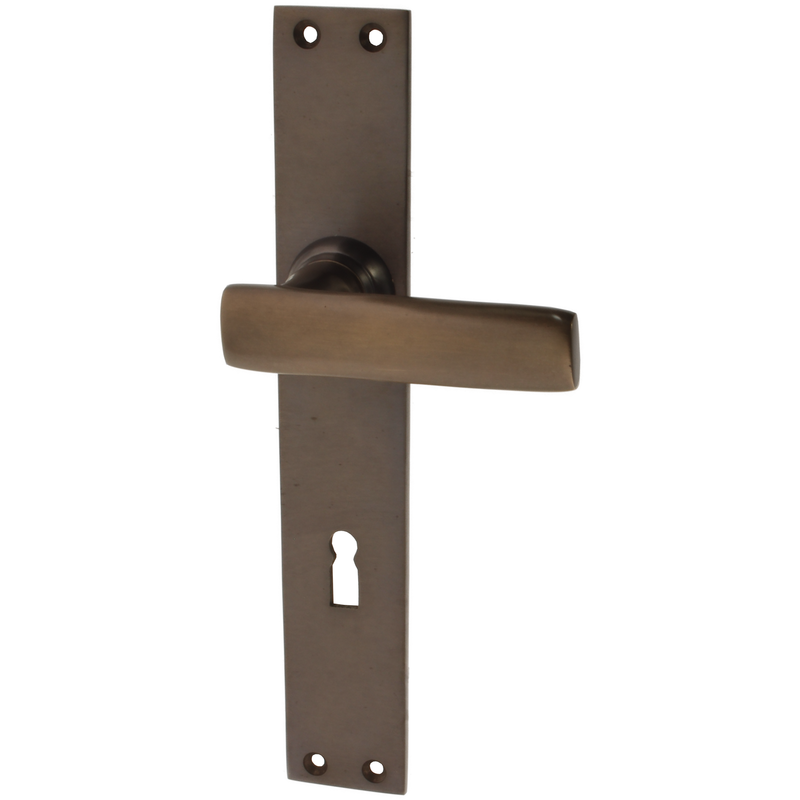 Zimmertürbeschlag - schlichtes Design aus dunkel patiniertem Messing - Modell Ehrismann A - handgearbeitet nach antiker Vorlage