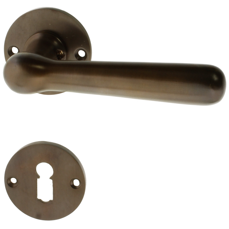 Rosettengarnitur mit Buntbart-Schlüsselloch. Egal, welchen Abstand das Schlüsselloch von der Türklinke hat, diese Garnitur passt in jedem Fall auch an Ihre historische Tür.