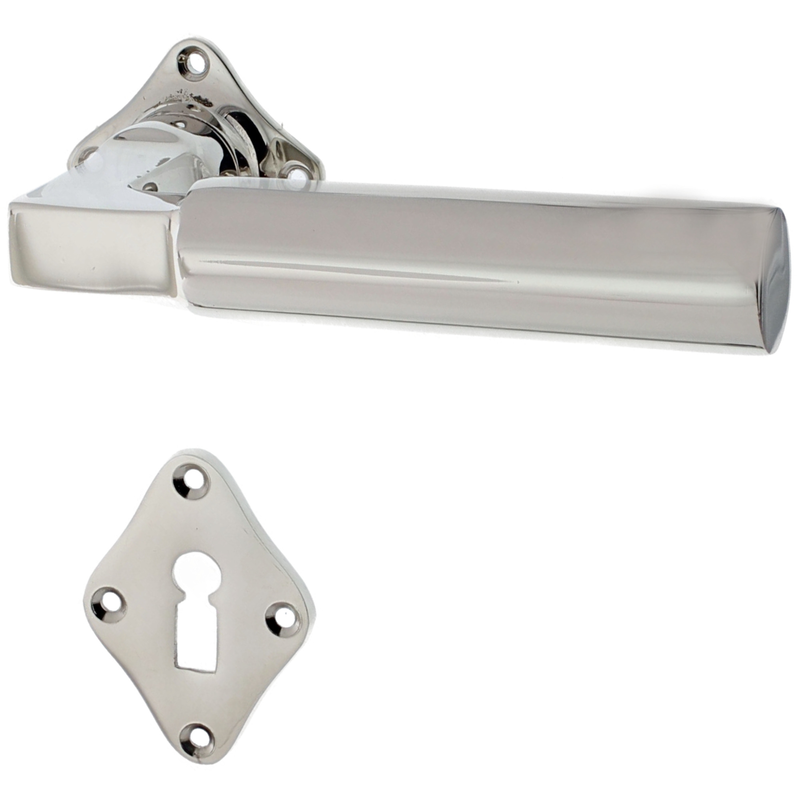 Türgarnitur - markante Form aus vernickeltem, hochglanz poliertem Messing - Modell Wauwilermoos - handgemacht nach antiker Vorlage