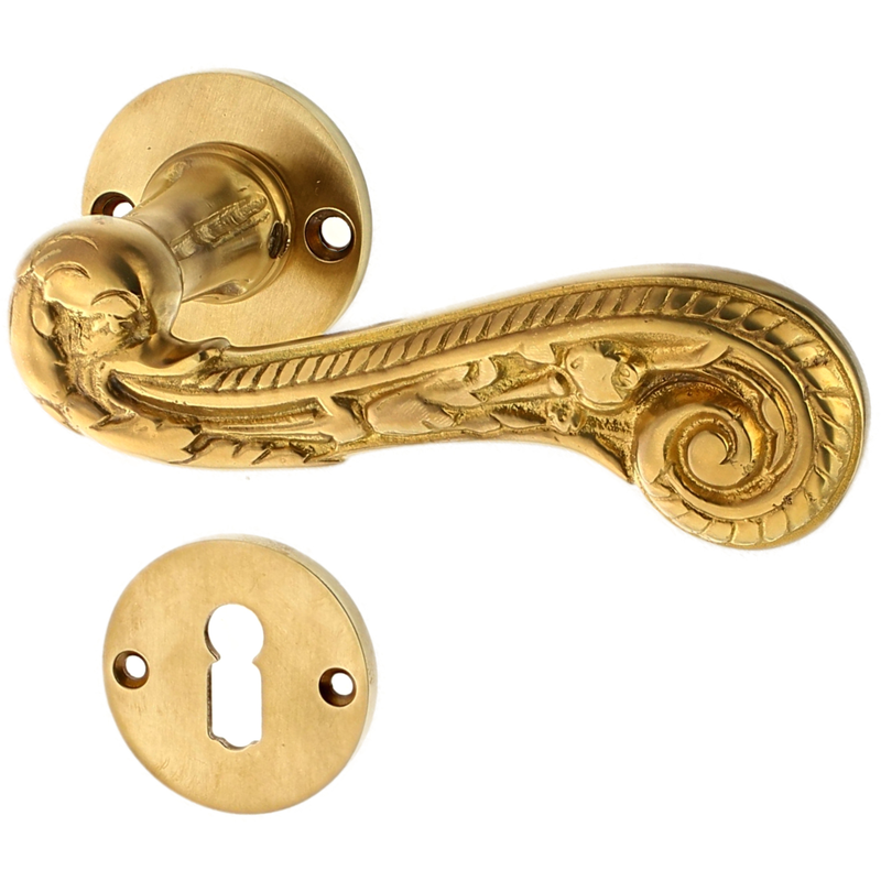 Rosettengarnitur mit Buntbart-Schlüsselloch. Egal, welchen Abstand das Schlüsselloch von der Türklinke hat, diese Garnitur passt in jedem Fall auch an Ihre historische Tür. Für WC-Verschlüsse bieten wir zusätzlich auch noch spezielle Einsteckschlösser an, falls Ihre Tür noch kein WC-Schloss hat. Schauen Sie bitte hier.