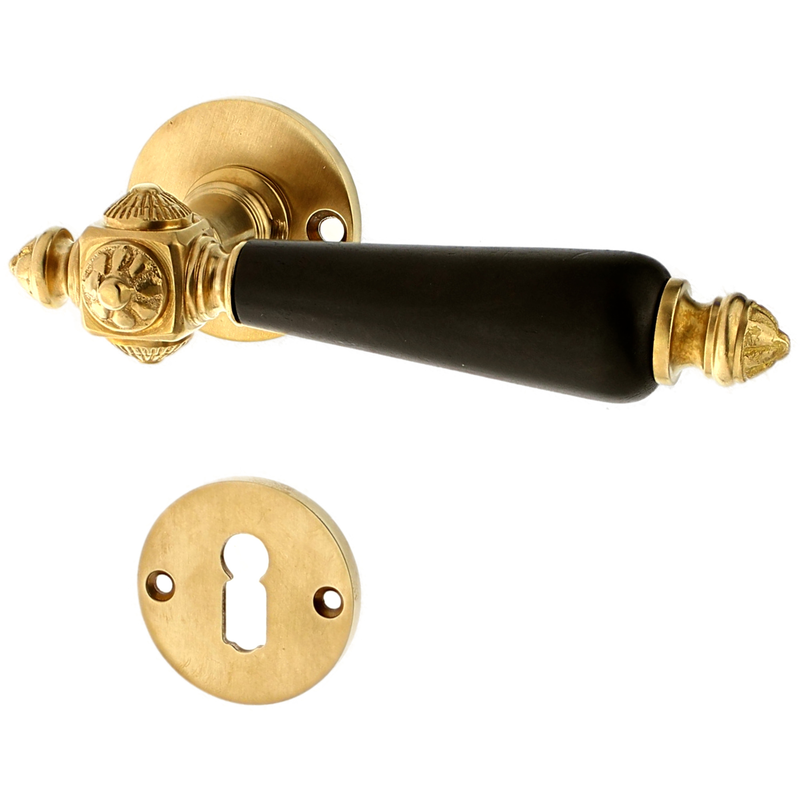 Rosettengarnitur mit Buntbart-Schlüsselloch. Egal, welchen Abstand das Schlüsselloch von der Türklinke hat, diese Garnitur passt in jedem Fall auch an Ihre historische Tür. Für WC-Verschlüsse bieten wir zusätzlich auch noch spezielle Einsteckschlösser an, falls Ihre Tür noch kein WC-Schloss hat. Schauen Sie bitte hier.