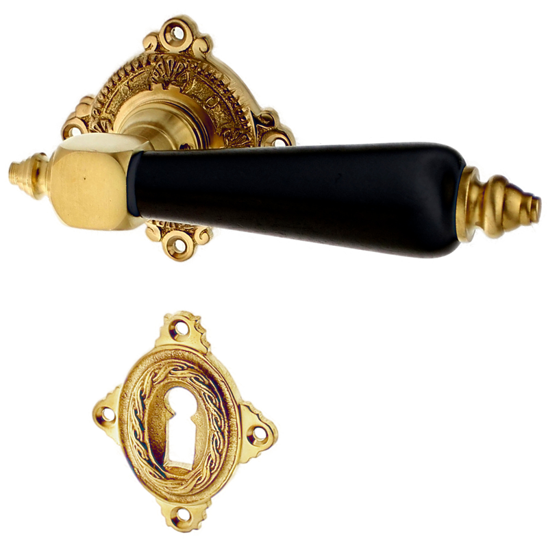 Rosettengarnitur mit Buntbart-Schlüsselloch. Egal, welchen Abstand das Schlüsselloch von der Türklinke hat, diese Garnitur passt in jedem Fall auch an Ihre historische Tür. Für WC-Verschlüsse bieten wir zusätzlich auch noch spezielle Einsteckschlösser an, falls Ihre Tür noch kein WC-Schloss hat. Schauen Sie bitte hier.