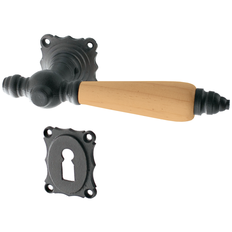 Rosettengarnitur mit Buntbart-Schlüsselloch. Egal, welchen Abstand das Schlüsselloch von der Türklinke hat, diese Garnitur passt in jedem Fall auch an Ihre historische Tür. Für WC-Verschlüsse bieten wir zusätzlich auch noch spezielle Einsteckschlösser an, falls Ihre Tür noch kein WC-Schloss hat. Schauen Sie bitte hier.