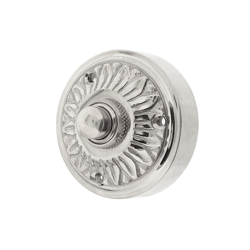 Gründerzeit Klingel Nickel hochglanz | Klingelplatte mit Klingelknopf| Antik Klingel N9266 Aufputz