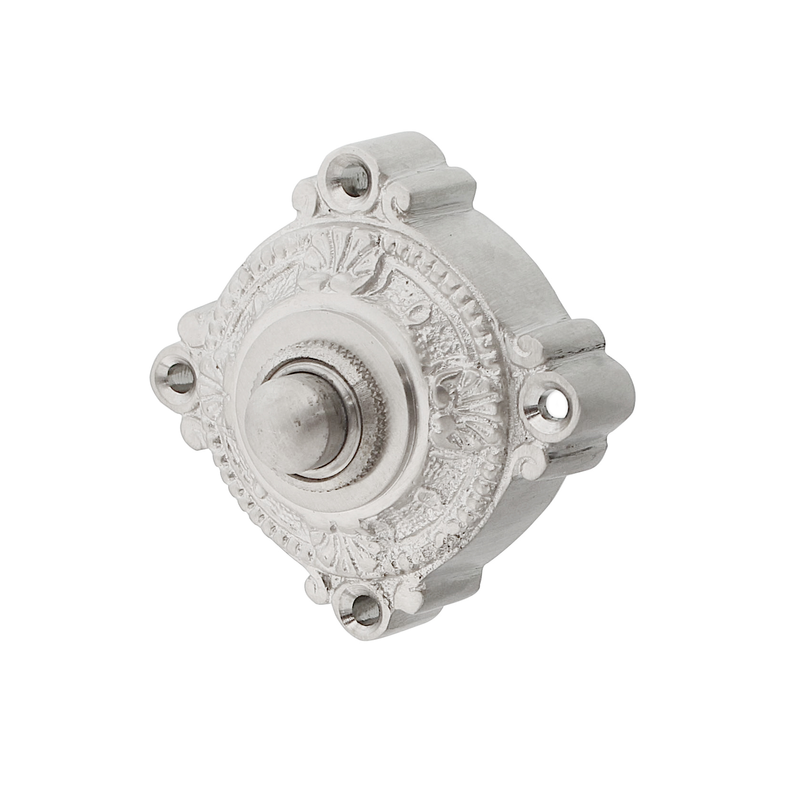 Gründerzeit Klingel Nickel matt gebürstet| Klingelplatte mit Klingelknopf| Antik Klingel NM9716 Aufputz