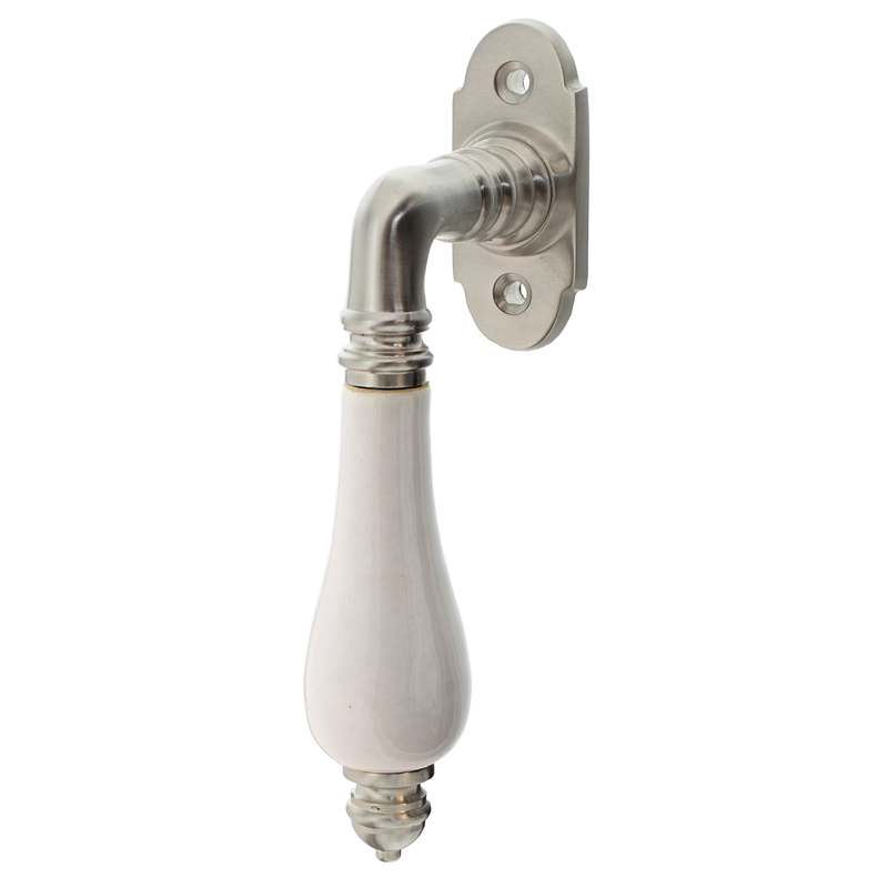 Die ergonomische Linienführung dieses Fenstergriffs unterstreicht die Form und Funktion dieser Halbolive. Das hochwertige Messing bildet durch seine vernickelt und gebürstete Griffoberfläche eine makellose Optik.