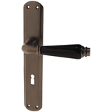 Bei der künstlichen Alterung unserer Türklinken, Drückern und Garnituren legen wir großen Wert auf ein natürliches Aussehen mit einer gleichmäßigen, aber nicht eintönigen Farbgebung. Ein leichtes Changieren ist daher normal und beabsichtigt. Intensiv oxidiert zeigen die Griffe und Beschläge eine unaufdringliche Eleganz und zeitlose Klarheit. Der braune Farbton strahlt Naturverbundenheit aus und wirkt dezenter als poliertes Messing. An den Kanten kann mit der Zeit durch Reibung und eine allmähliche Abnutzung der Oxidation das schimmernde Messing zum Vorschein kommen.